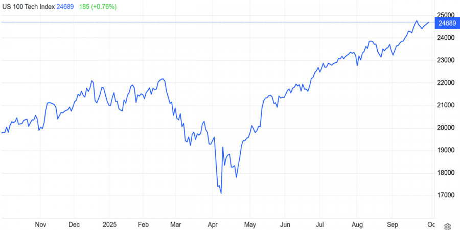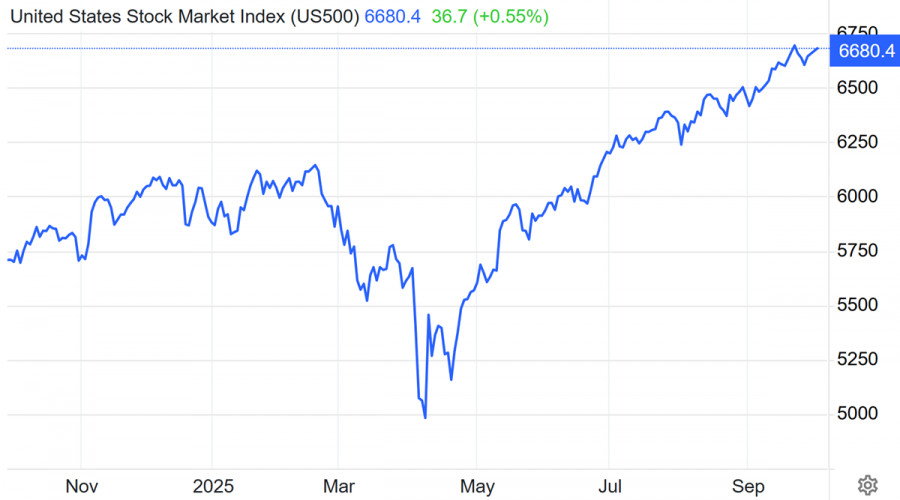 Американские фондовые индексы вошли в новую неделю с ростом. Фьючерсы на S&P 500 и Dow Jones прибавили по 0,4%, Nasdaq 100 подрос на 0,6%. Казалось бы начало позитивное: инвесторы охотно покупают, мегакапиталы вроде Amazon, Alphabet и Nvidia в зеленой зоне, а сентябрь завершается для рынка уверенным приростом.