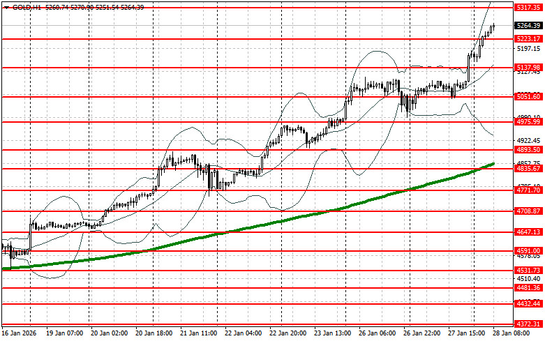 Что касается текущей технической картины золота, то покупателям нужно забирать ближайшее сопротивление $5317. Это позволит нацелиться на $5416 выше которого пробиться будет довольно проблематично. Самой дальней целью выступит области $5526. В случае падения золота медведи попытаются забрать контроль над $5223. Если это удастся сделать, пробой диапазона нанесет серьезный удар по позициям быков и столкнет Gold к минимуму $5137 с перспективой выхода на $5051.
