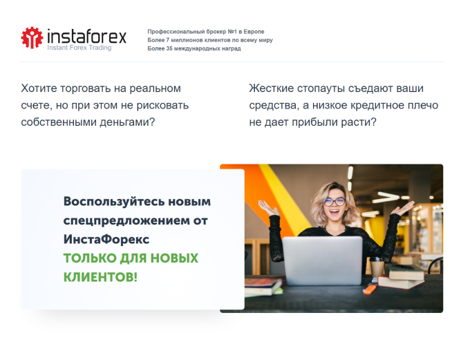 Клієнтам компанії ІнстаФорекс надається виняткова можливість збільшити депозит за рахунок брокера, просто відкривши реальний торговий рахунок і заповнивши заявку на додаток 55% від внесеної на нього суми.