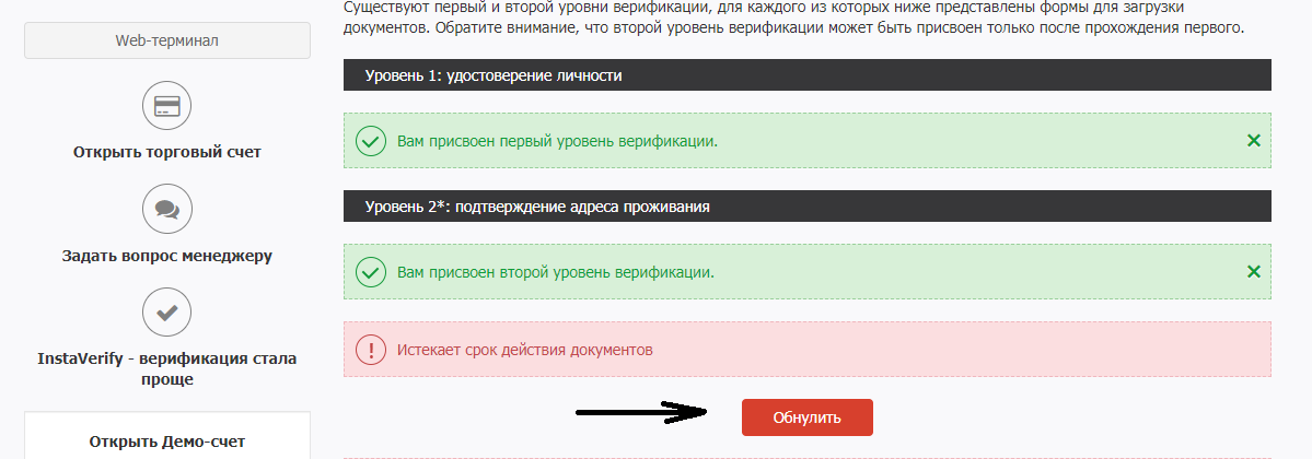 In order to avoid delays in your deposits and withdrawals, we strongly recommend that you download the updated documents. To do this, you should log into your Client Area, find the Account verification section and press the Reset button. This will reset your verification status and you will be able to upload new documents to the same page.