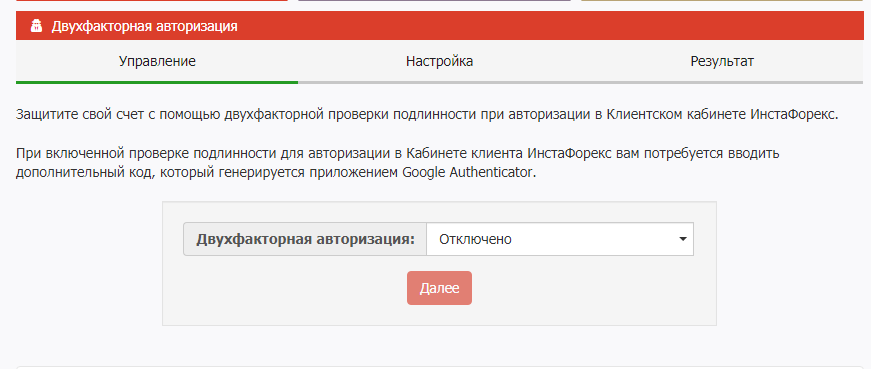 3. После этого шага активация двухфакторной авторизации будет завершена, и при каждом входе в кабинет клиента помимо пароля будет запрошен шестизначный код из приложения Google Authenticator.